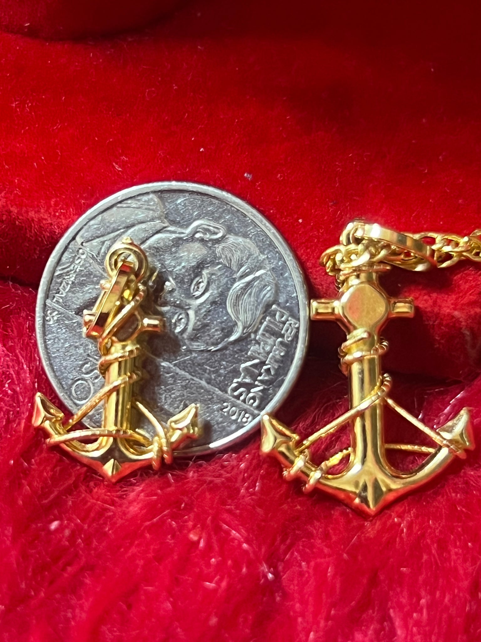 Crafted from solid 18K Saudi gold, this anchor pendant is more than just jewelry—it's a statement of strength and stability. With its classic 25mm size, it’s perfect for those who want something bold yet refined. Whether pang-daily wear or pang-occasion, this piece adds instant elegance to any outfit.