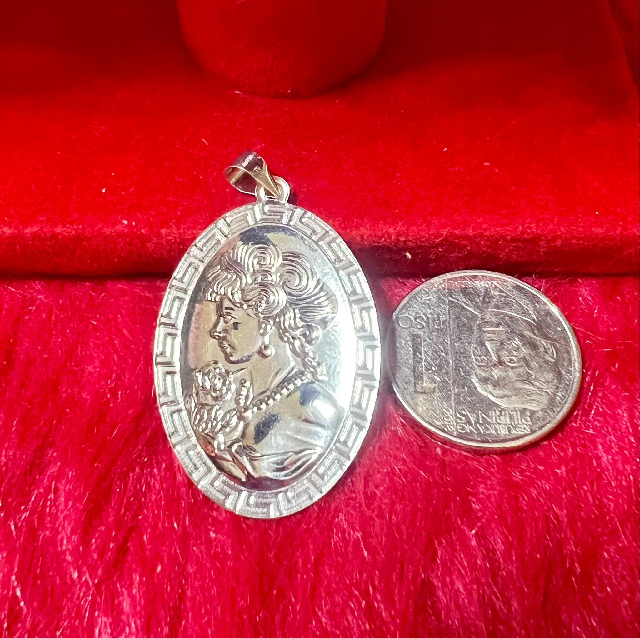 β¨ Exquisite 18K White Gold Cameo Pendant β¨ Timeless meets modern in this finely crafted 18K Saudi Gold pendant featuring a large, intricately detailed cameo design. Perfect for collectors and everyday queens who love classic artistry with a touch of sophistication.
