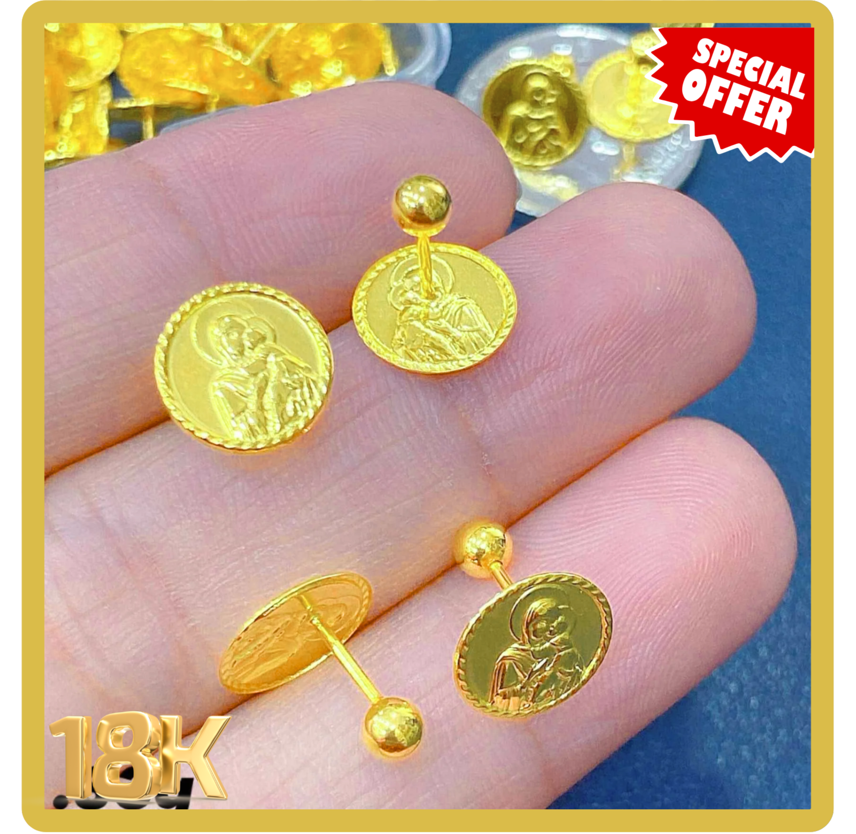 ✨ CAMEO Screw Lock/Seruscas Stud Earrings ✨ 💛 18K Saudi Gold | PER PIECE ONLY